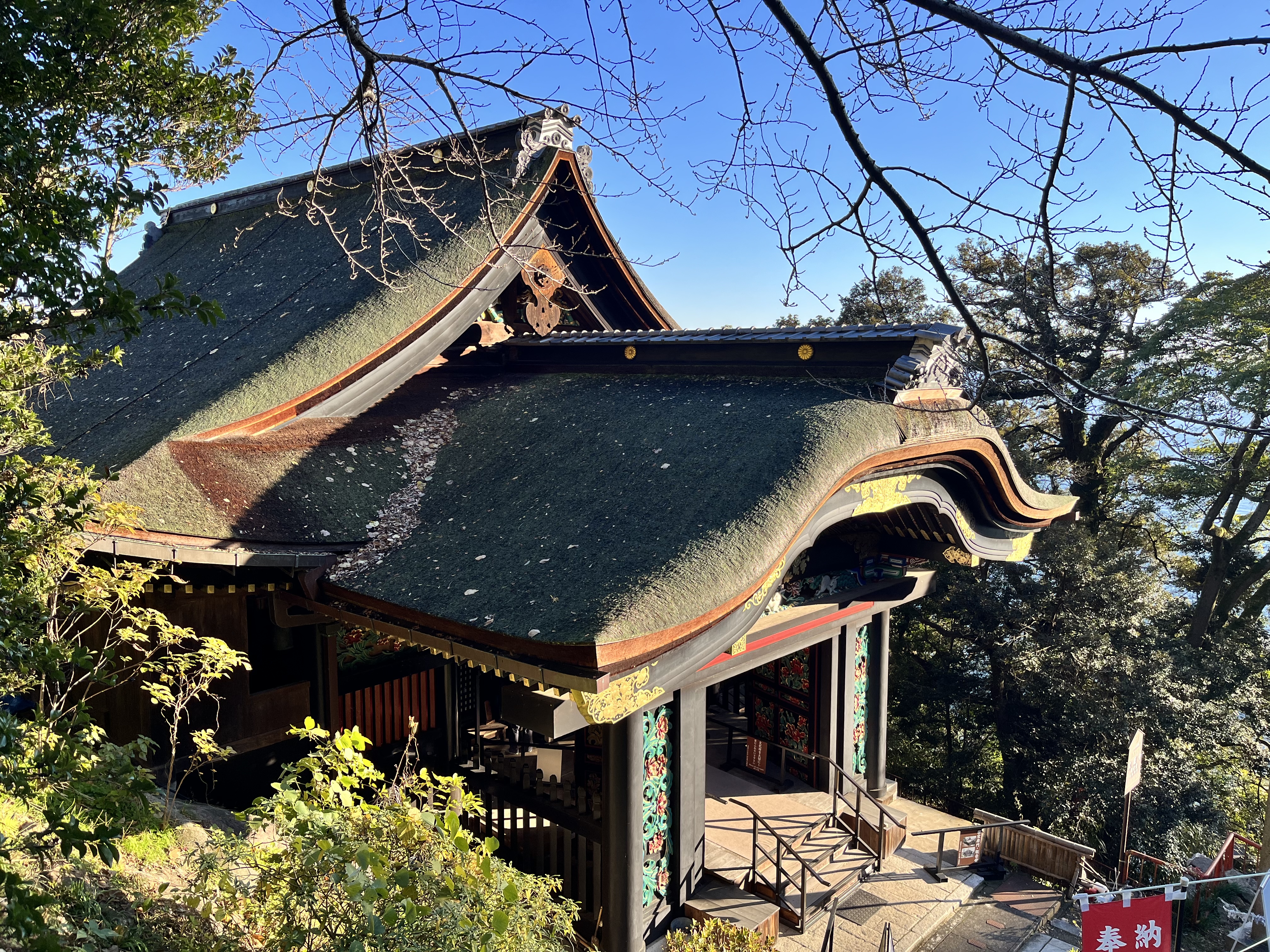 島内には日本三弁財天の一つである大弁財天を祀る宝厳寺や龍神信仰の都久夫須麻神社があります。晴れた日の木漏れ日がきれいな「祈りの階段」と呼ばれる165段の階段を上り宝厳寺の本堂へ。本堂では紙に書いた願いごとをだるまに入れる「幸せ願いダルマ」を奉納できます。また、国宝である唐門や重要文化財に指定された舟廊下など、歴史的な価値のあるものも多く残されています。