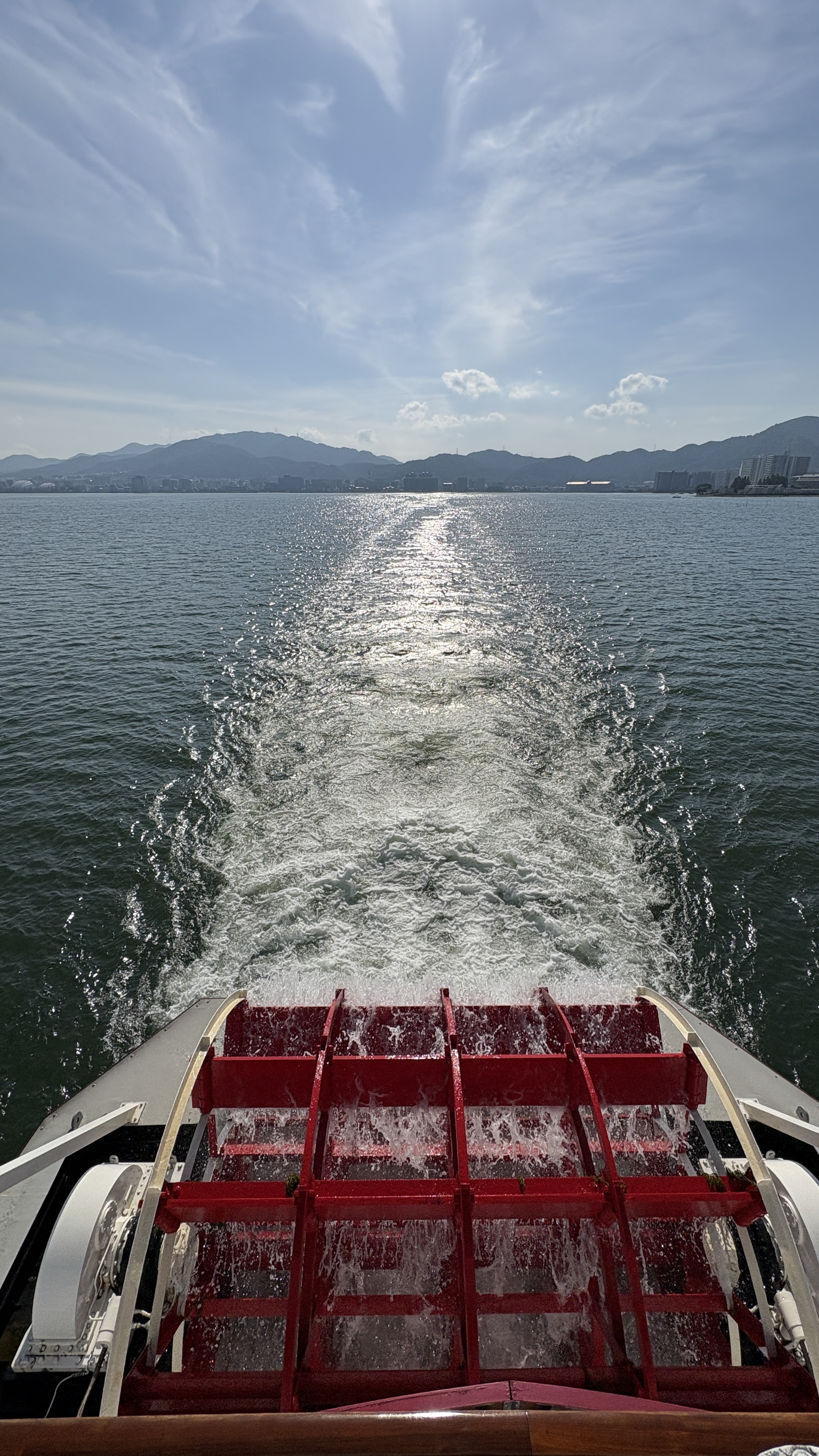 From the Sky Deck on the 4th Floor of the boat, you can encounter a panoramic view of Lake Biwa. Please enjoy the magnificent view of Lake Biwa.